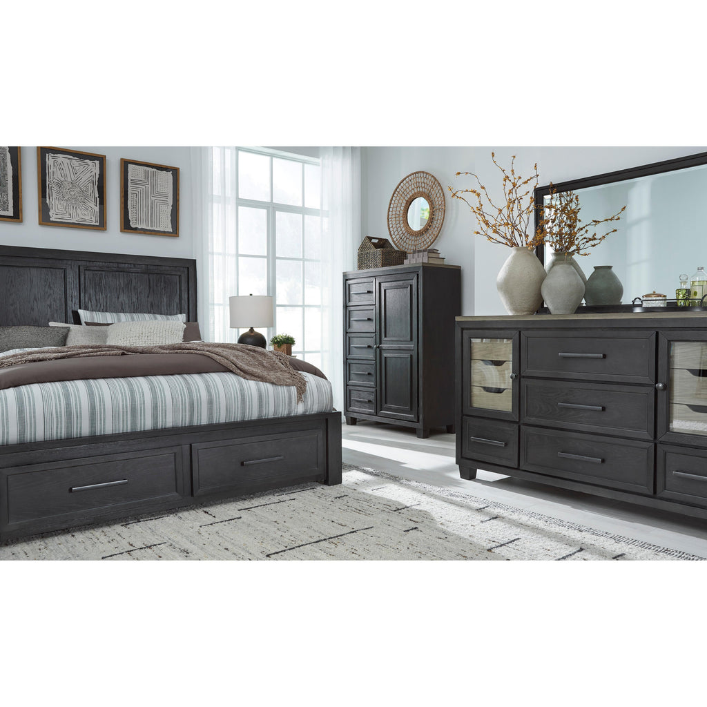 • Sleek drawer pulls with black finish