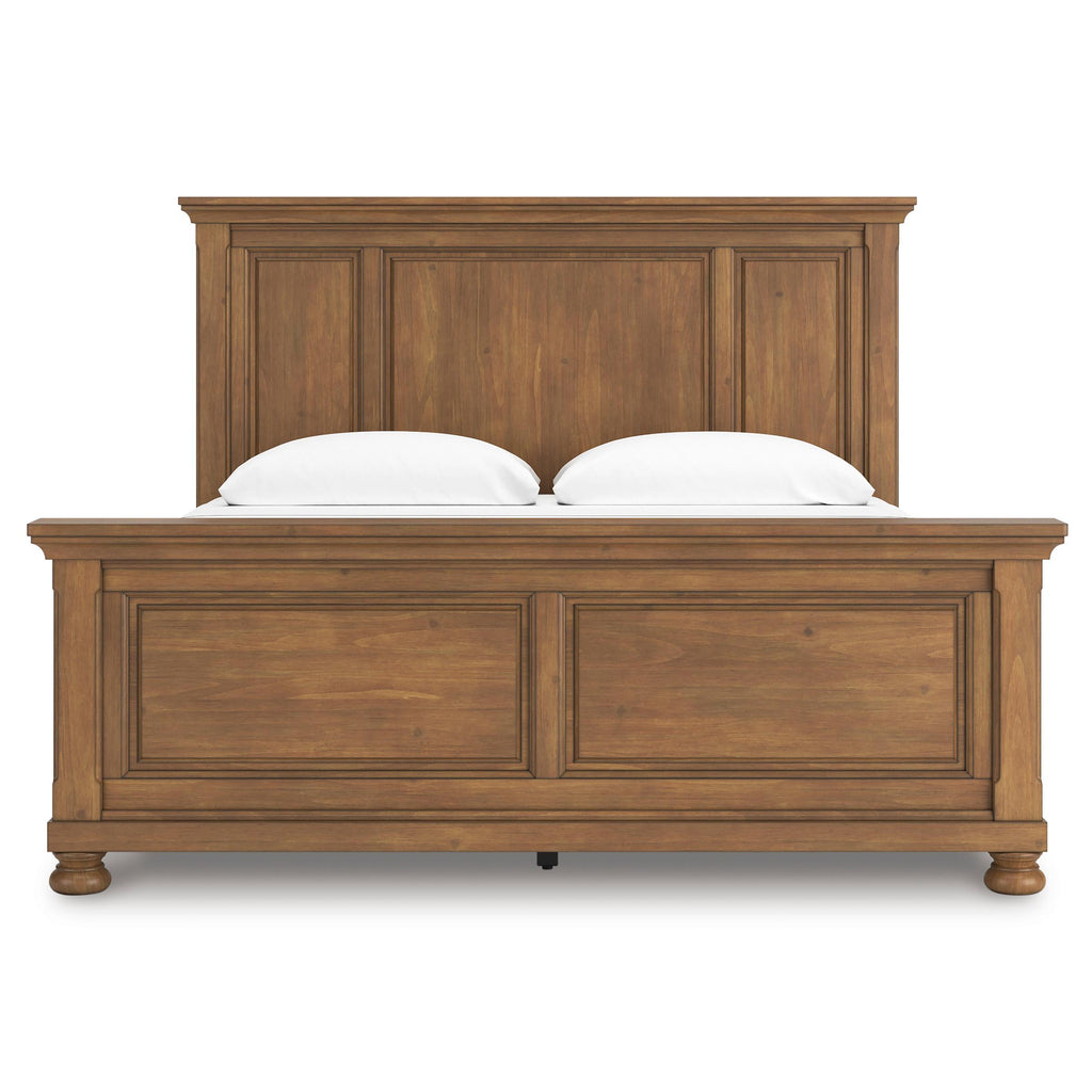 A relaxed take on casual traditional design, the Vandenmore king panel bed strikes a comfy pose with a classic sensibility. Its timeless design and chestnut brown wood tone create a welcoming retreat tailored to your laid-back lifestyle. Now there’s a bed with staying power.