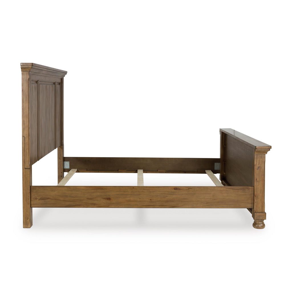 A relaxed take on casual traditional design, the Vandenmore king panel bed strikes a comfy pose with a classic sensibility.... A relaxed take on casual traditional design, the Vandenmore king panel bed strikes a comfy pose with a classic sensibility. Its timeless design and chestnut brown wood tone create a welcoming retreat tailored to your laid-back lifestyle. Now there’s a bed with staying power. View more