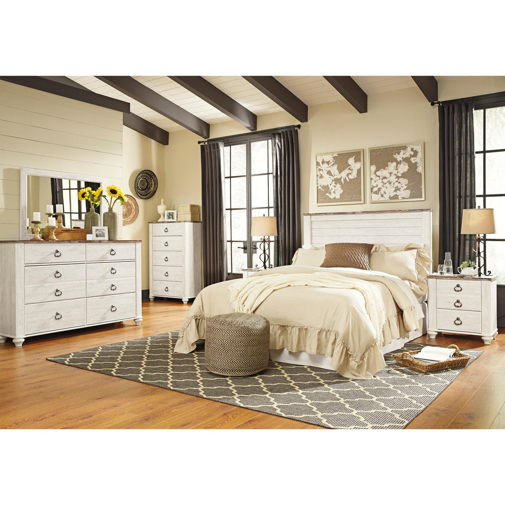 Le look ultime pour un chalet de plage ou une retraite d'inspiration shabby chic, cette tête de lit Queen à panneau vous transporte dans un temps et un lieu de rêve. Sa finition blanchie à la chaux en bois flotté est merveilleusement agréable à regarder. Les détails en fausses planches intègrent une touche rustique classique qui est si chaleureuse et réconfortante. Matelas, cadre de lit et sommier vendus séparément. |