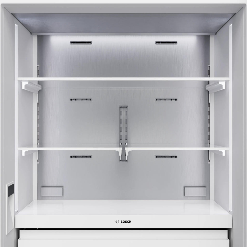 Ce réfrigérateur-congélateur inférieur encastré prêt pour panneau Bosch de 30 pouces de largeur est doté d’un éclairage DEL lumineux, de la fonction Home Connect™, d’une machine à glaçons intégrée et offre une capacité totale de 16,5 pi³.