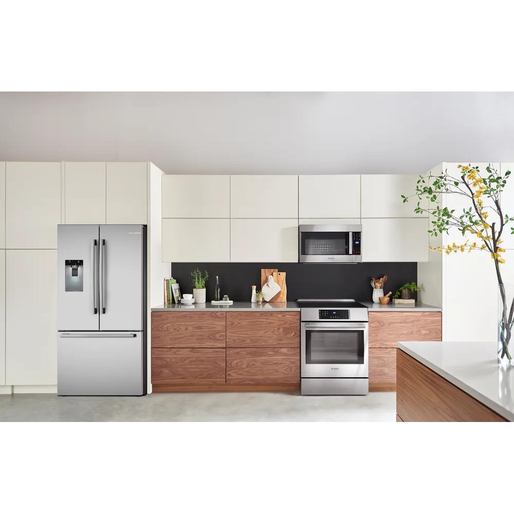 Réfrigérateur Bosch de 36 pouces de la série 500 à porte française montée en bas sans aucun givre. Équilibre la température et offre une humidité personnalisable, pour l’environnement optimal pour vos fruits et légumes. Deux bacs permettent un stockage et une organisation abondants, chacun avec un contrôle d’humidité distinct. Le système™ innovant QuickIcePro combine trois technologies pour produire rapidement de la glace filtrée fraîche dans votre réfrigérateur. *Basé sur les taux de production d’une seule machine à glace sur une période de 24 heures, mesurés selon les normes IEC, lorsque le bac à glace a été retiré. Les résultats peuvent varier selon les conditions de fonctionnement.