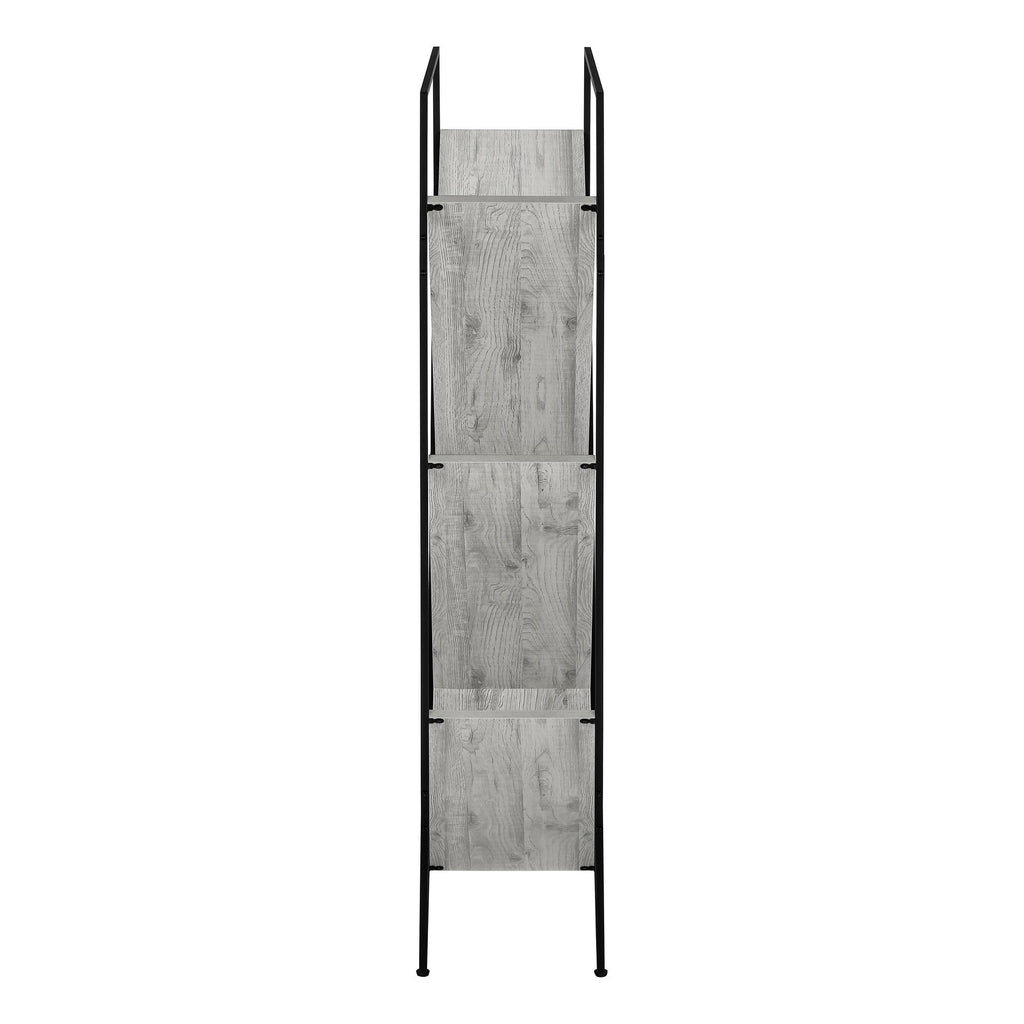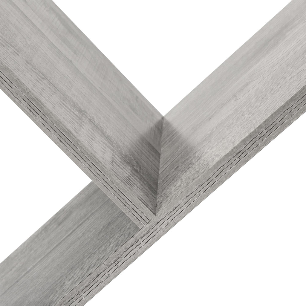 • Les tablettes ouvertes sont finies de tous les côtés dans un fini lisse d'aspect bois gris
