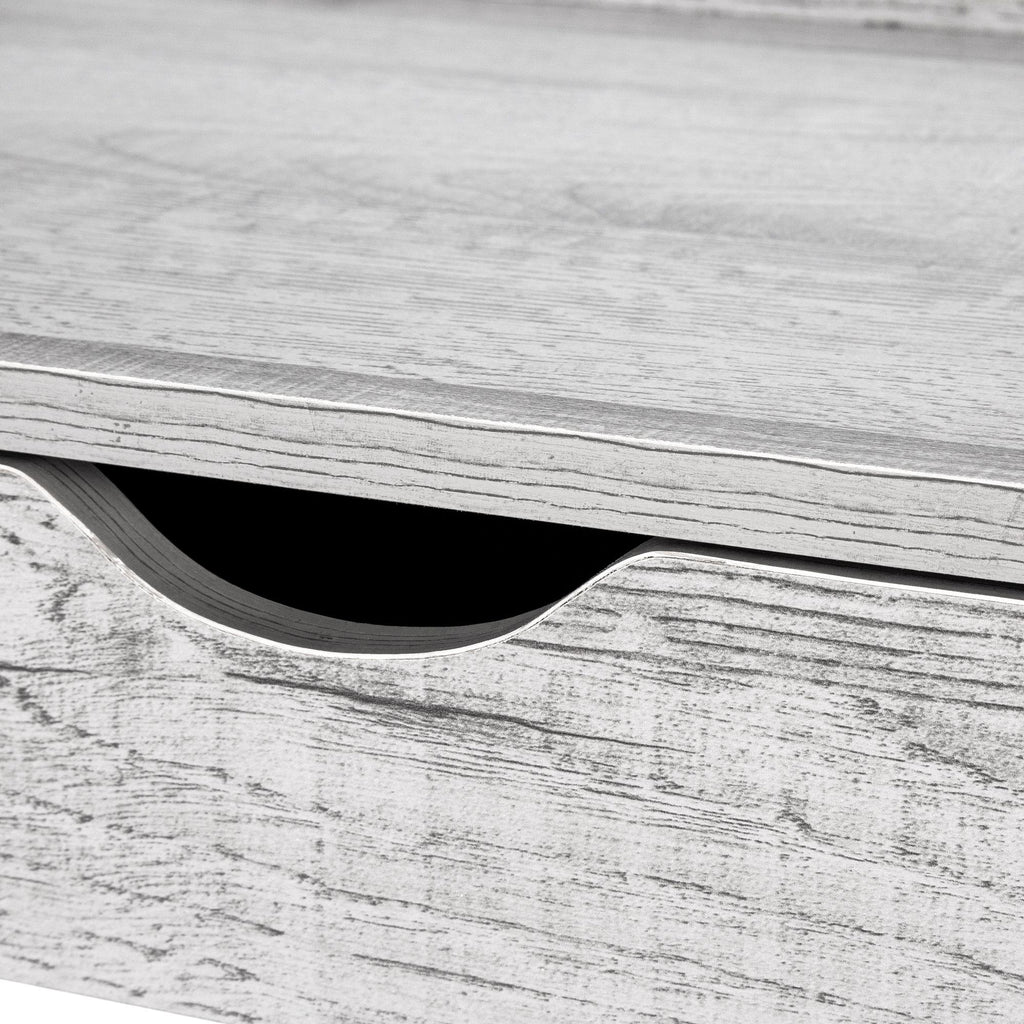 • Beaucoup de rangement avec un long tiroir sur glissières en métal avec une poignée intégrée, et 3 tiroirs sur le dessus avec une étagère pour d'autres articles essentiels à portée de main