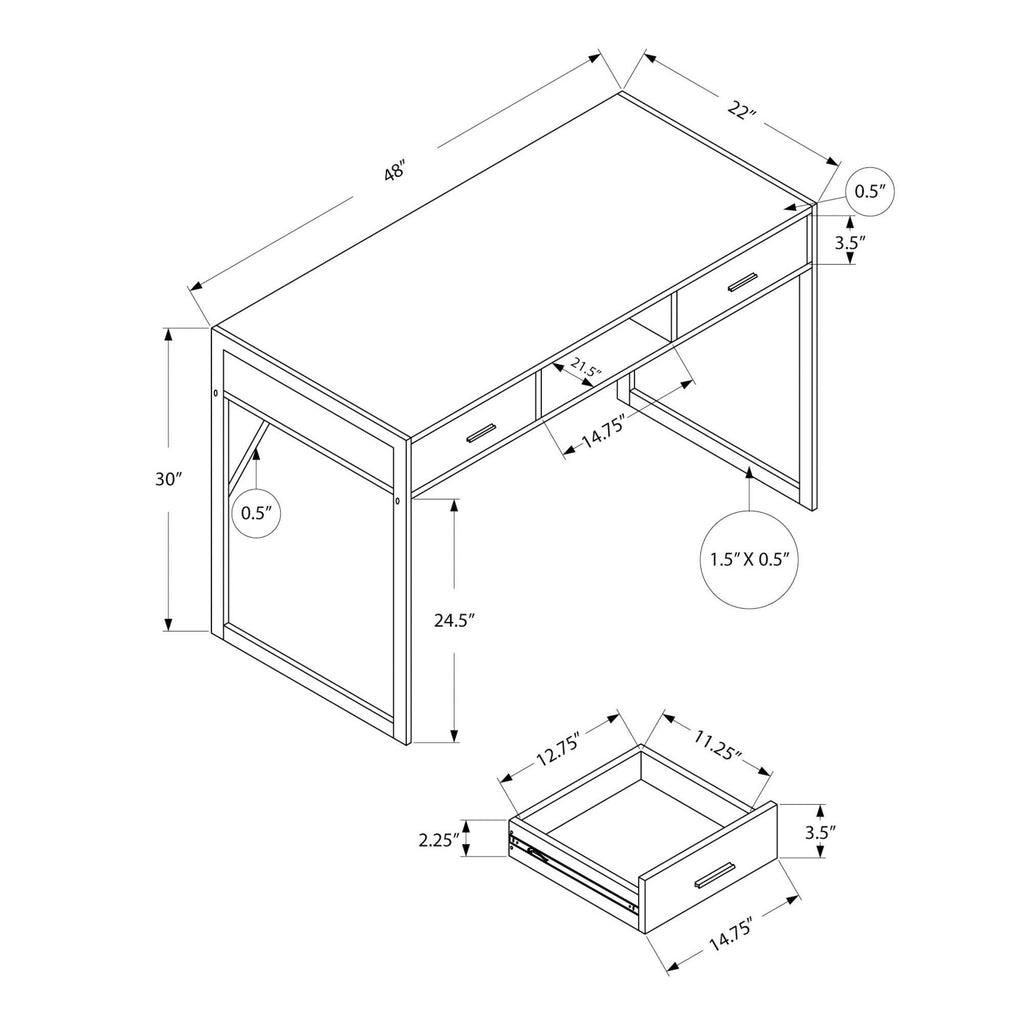 • Intérieur du tiroir - Hauteur : 2,25 po