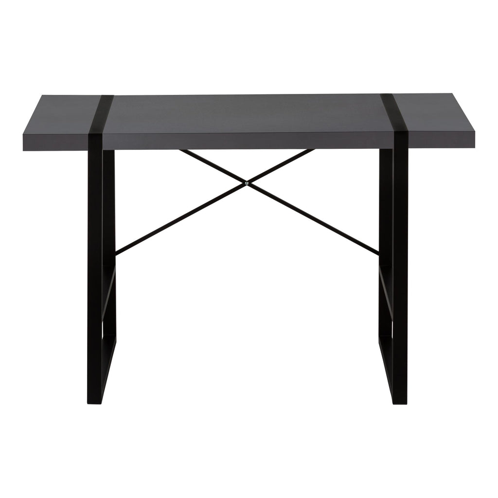 Cet élégant bureau d'ordinateur d'inspiration industrielle pourrait facilement passer pour une table d'appoint. Il comporte un dessus de bureau spacieux... Cet élégant bureau d'ordinateur d'inspiration industrielle pourrait facilement passer pour une table d'appoint. Il comporte un dessus de bureau spacieux à panneaux épais fini en stratifié gris moderne et des pieds en métal robustes dans une finition noire contrastante. Les composants métalliques sont très évidents avec des pieds rectangulaires intégrés dans le bureau et une barre de support exposée en forme de X attrayante à l'arrière du bureau. Si vous utilisez un salon ou une chambre à coucher comme bureau à domicile et que vous recherchez une alternative simplifiée aux bureaux traditionnels, cette table d'écriture fait le travail. Voir plus