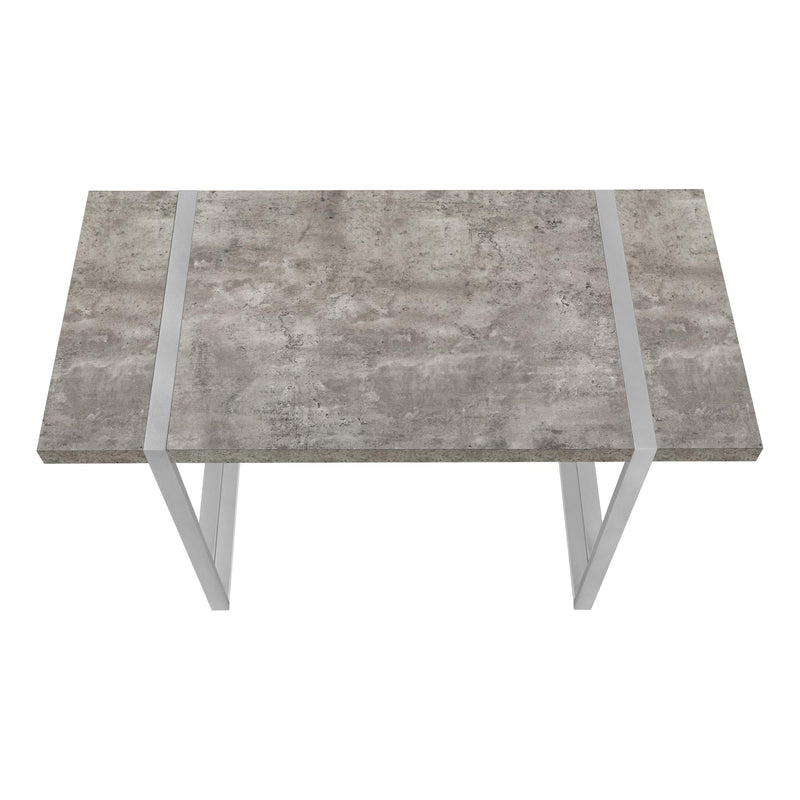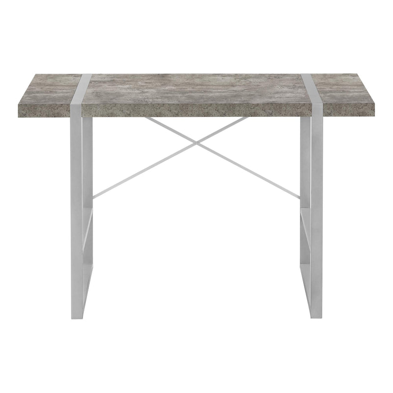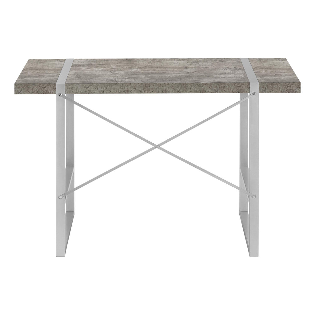 • Des pieds métalliques robustes au fini argenté sont incorporés au bureau pour un effet visuel intéressant