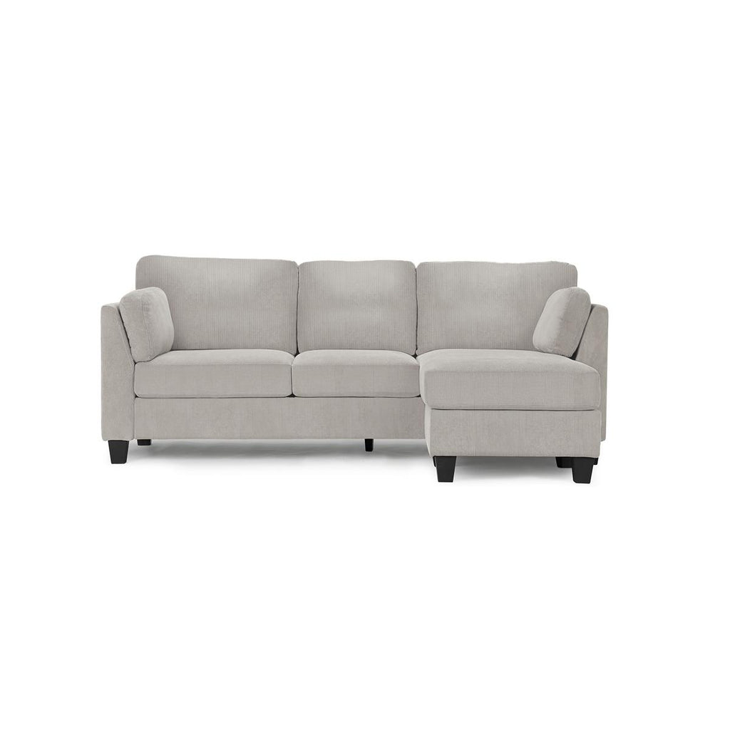 Conçu pour s'intégrer à votre salon, ce sectionnel est doté d'une chaise longue qui peut être installée à gauche ou à droite, tandis que le confort est assuré par le dossier rembourré moelleux et l'assise à coussins lâches ainsi que de grands coussins latéraux. Les accoudoirs fins et les pieds biseautés apportent une touche finale élégante. Structure en bois massif et en contreplaqué, assises avec à ressorts entièrement rembourrées de mousse haute densité.