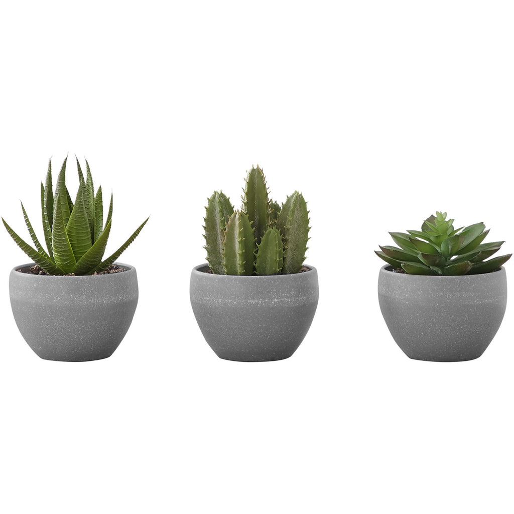 • Chaque plante artificielle est mise en pot dans des pots en ciment gris neutre, avec un habillage de sable naturel sur le dessus, parfait pour être placé à l'intérieur sur des tables, des étagères ou d'autres surfaces planes
