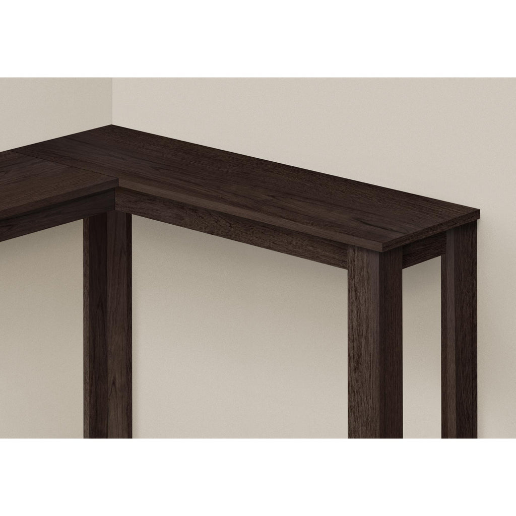 • Table d'entrée avec un design en coin unique dans une élégante finition espresso