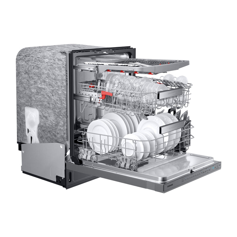Ce lave-vaisselle encastré de 24 pouces de Samsung est doté de sept programmes de lavage, de huit options, du système de nettoyage AquaBlast™ et d’une cuve en acier inoxydable.