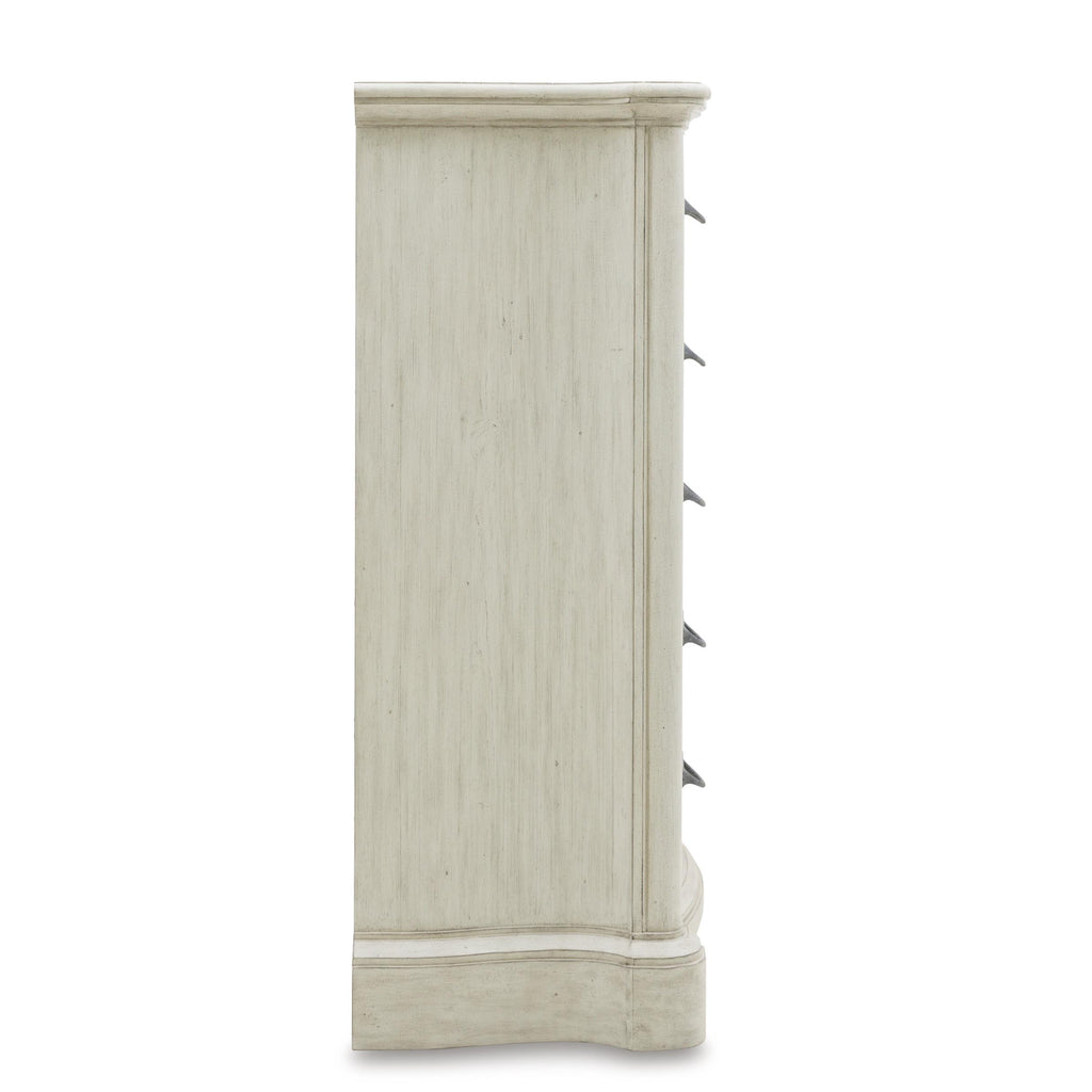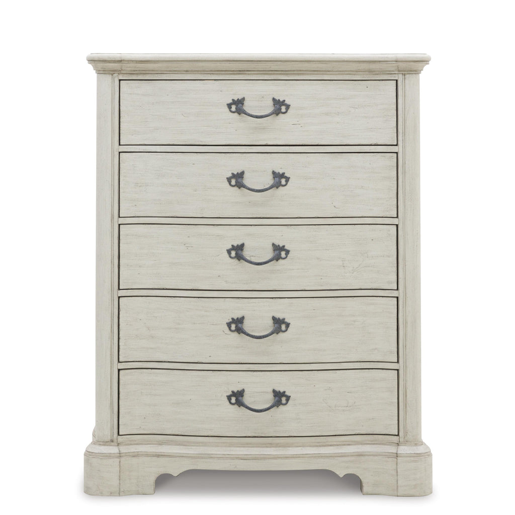 | Ajoutez une touche de romantisme à votre chambre avec cette commode. Sa finition peinte en blanc vieilli et ses moulures en serpentines sont l'image d'une élégance simple. Cinq tiroirs spacieux offrent un grand espace de rangement, tandis que les poignées de bar conçues sur mesure ajoutent de l'originalité. | |