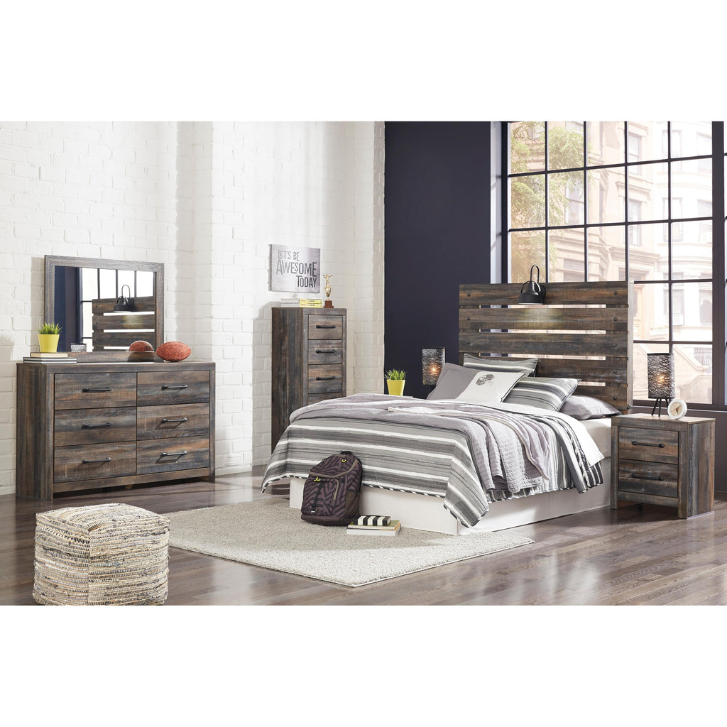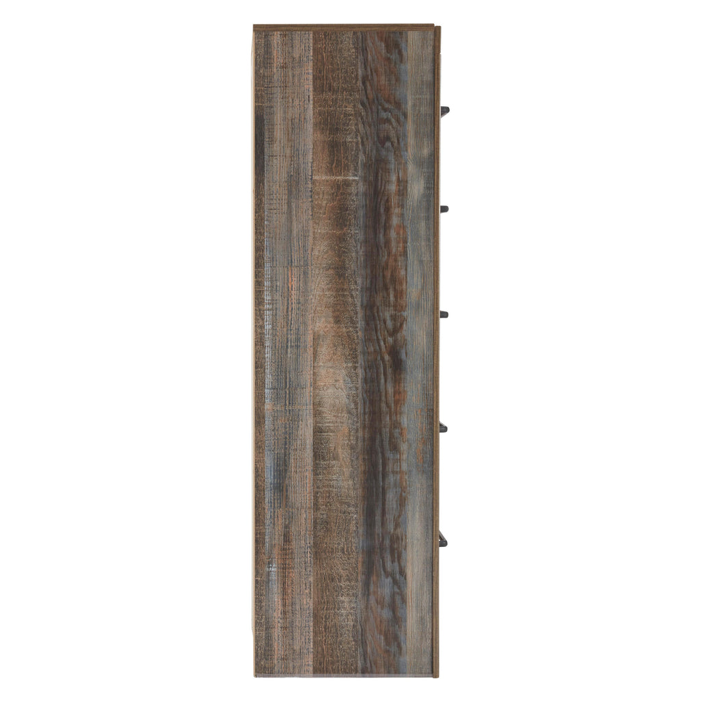 • Finition rustique brun avec des accents orange brûlé et teal dans un grain de bois reproduit au toucher authentique
