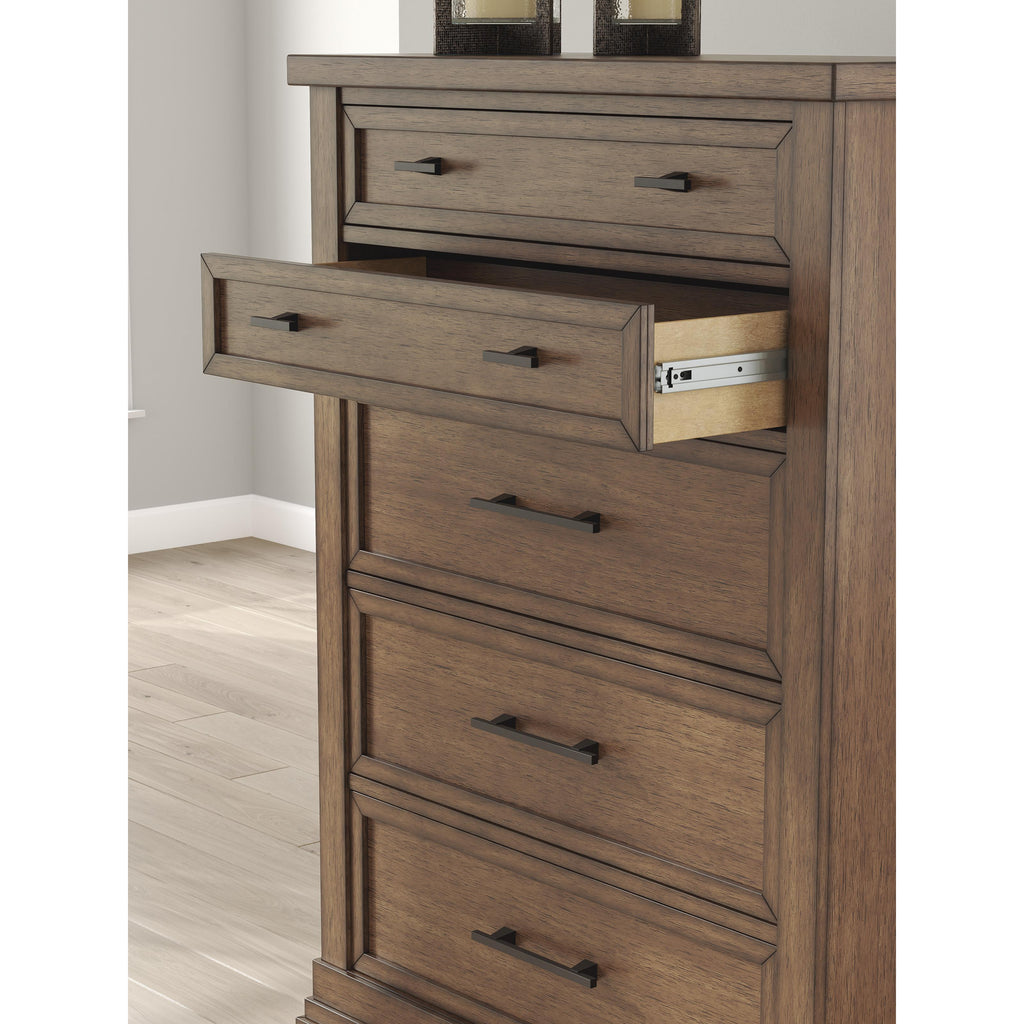 • 5 tiroirs à glissière lisse avec intérieurs entièrement finis, construction à queue d’aronde française/anglaise et glissières latérales robustes à billes