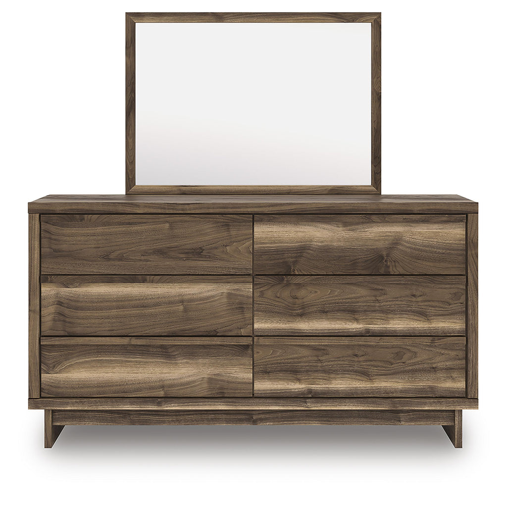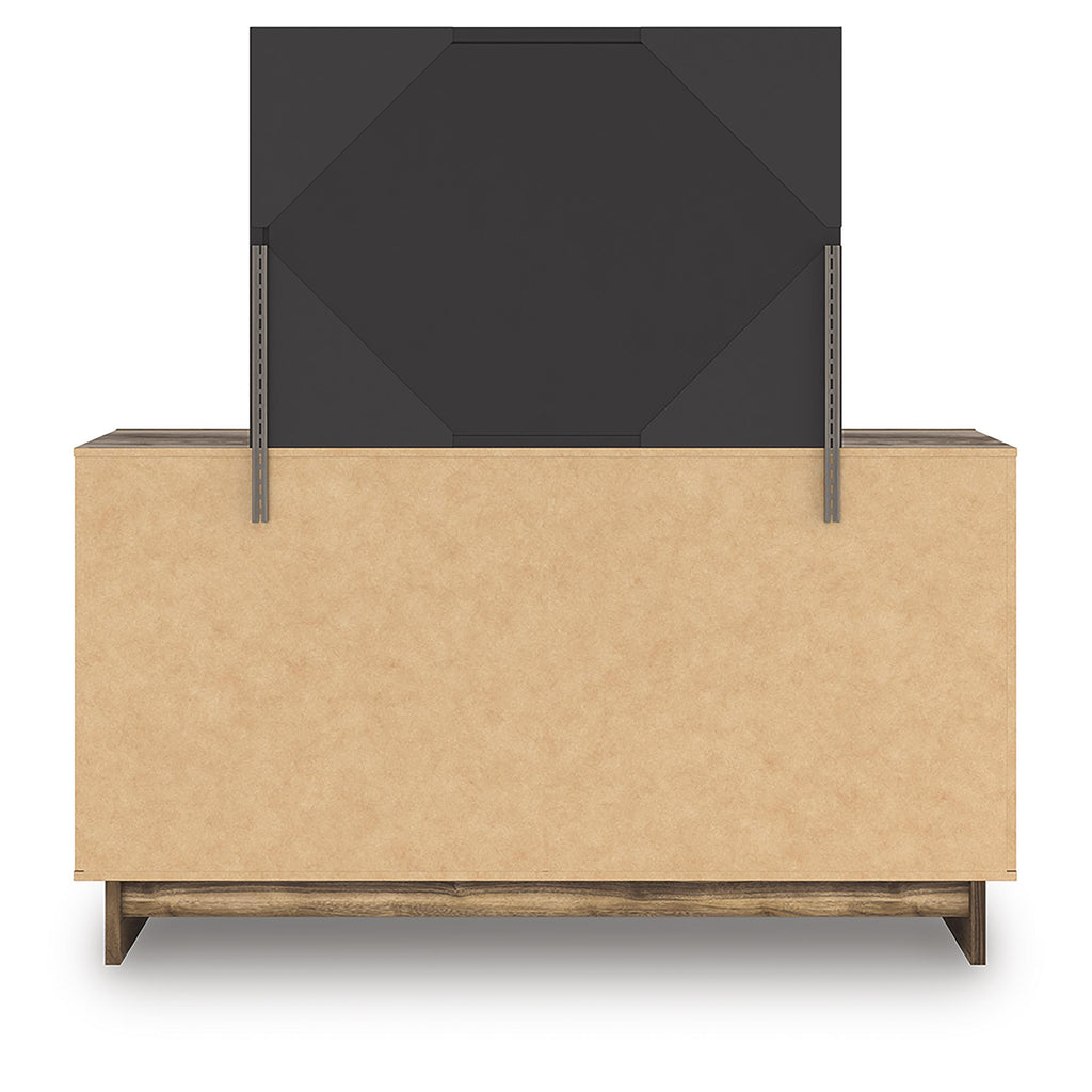 • Le miroir se fixe à l'arrière de la commode ; peut également être monté au mur horizontalement ou verticalement