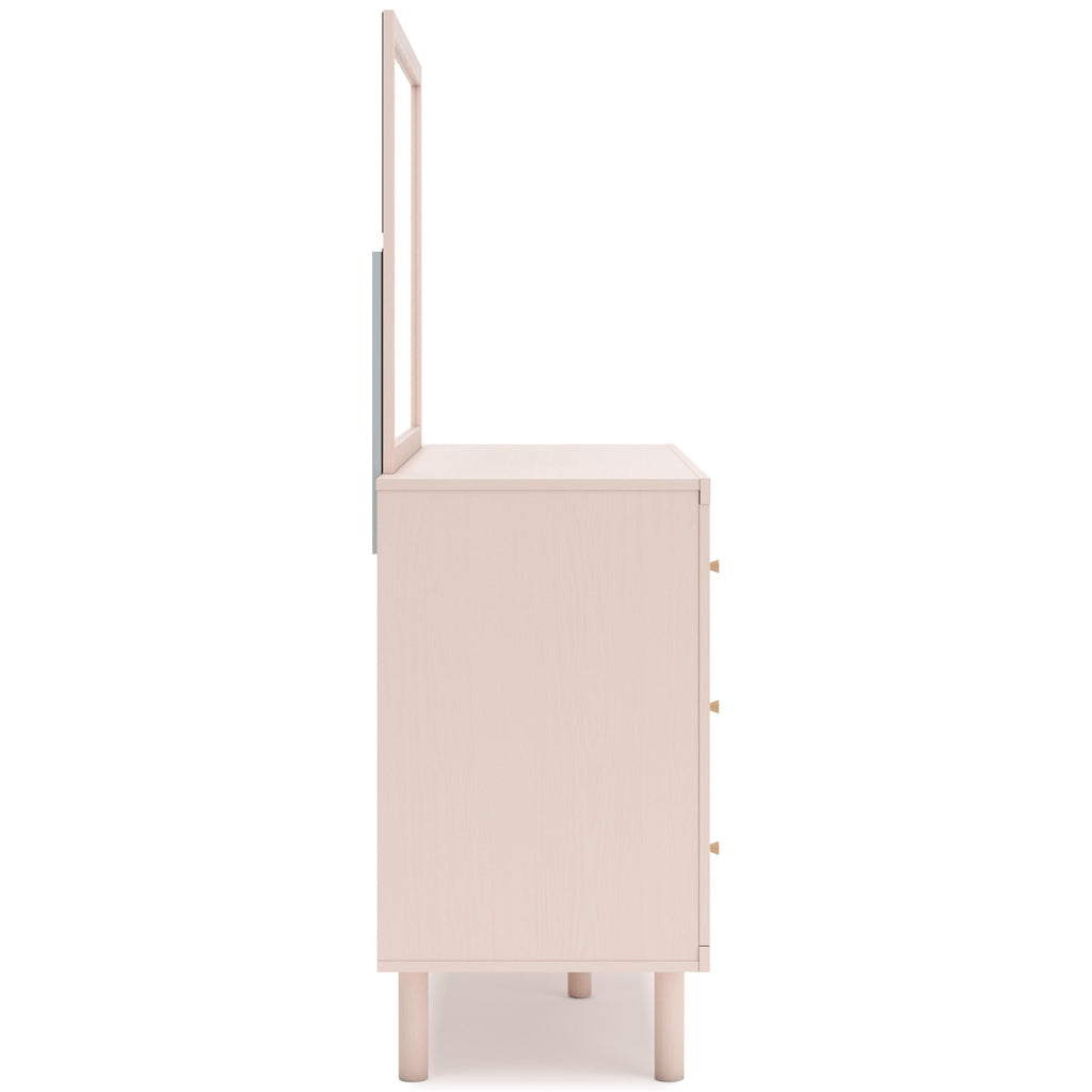 • Le miroir peut être fixé à l'arrière de la commode ou monté au mur (horizontalement ou verticalement)