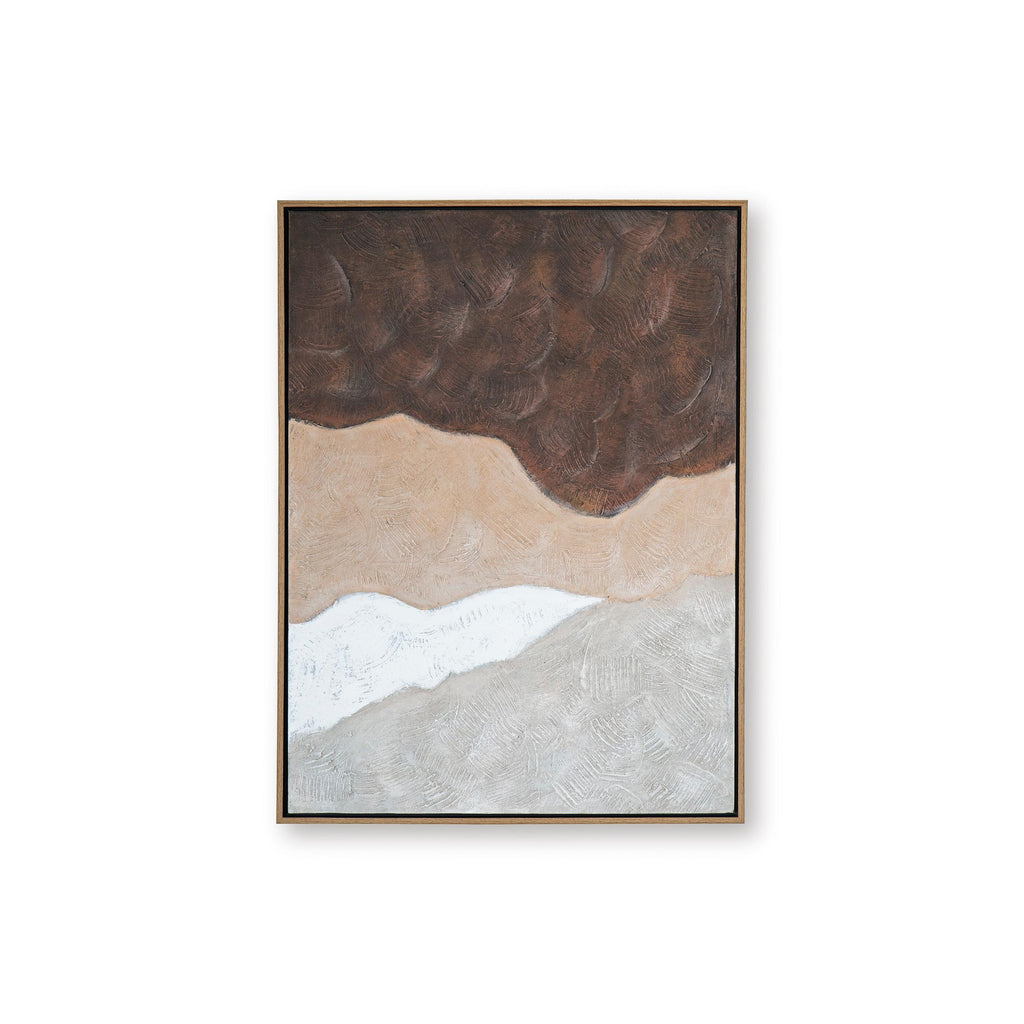Votre quête de l’œuvre parfaite se termine avec cette œuvre d’art murale contemporaine. Avec la sensation d’un paysage abstrait, la... Votre quête de l’œuvre parfaite se termine avec cette œuvre d’art murale contemporaine. Avec la sensation d’un paysage abstrait, la toile peinte à la main présente un mélange harmonieux de teintes pour créer de la profondeur et du mouvement. Conçue avec soin avec un cadre brun clair et une flexibilité de suspension dans les quatre directions, cette œuvre d’art polyvalente complète parfaitement votre espace soigneusement organisé. Voir plus
