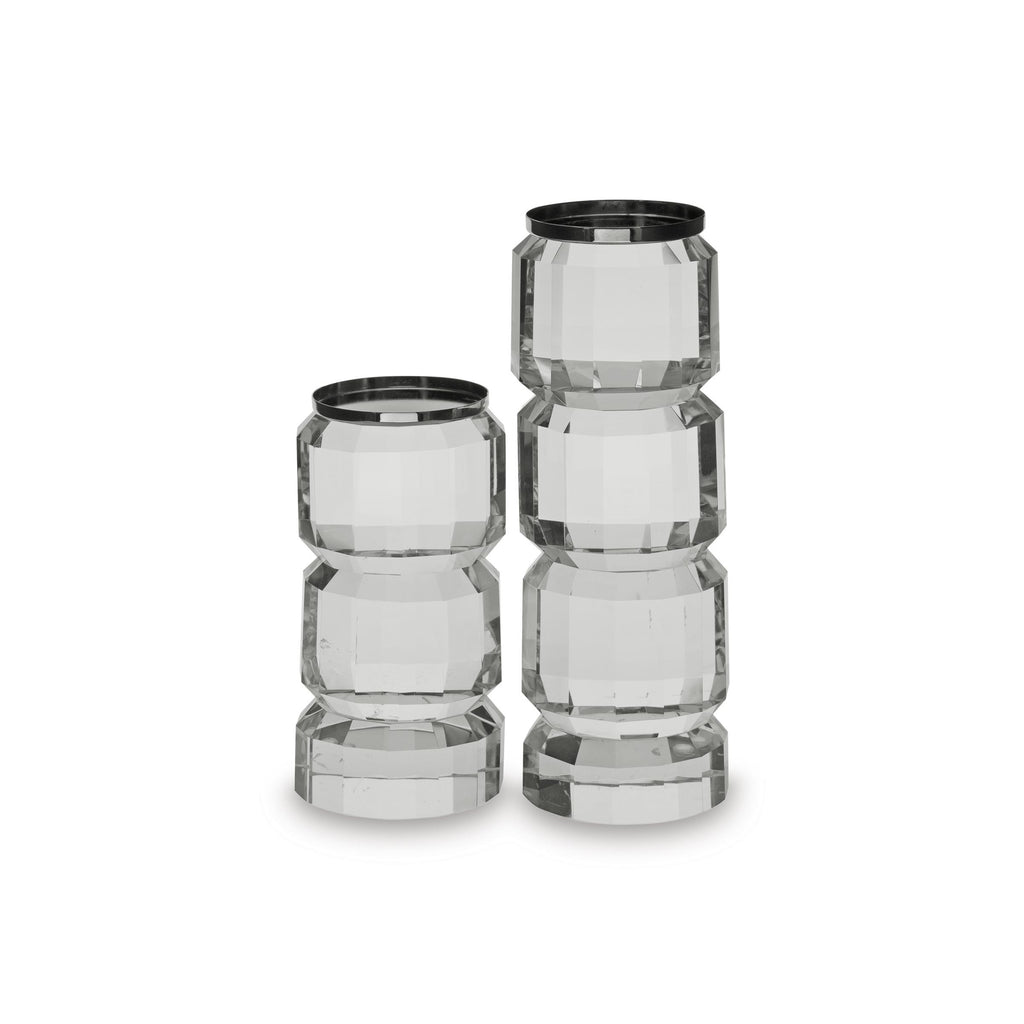 Clairement haut de gamme et tendance. Associant du cristal à des accents métalliques argentés, cet ensemble de bougeoirs brille d’une sensibilité sophistiquée. Il est parfait pour vos goûts en matière de design contemporain.