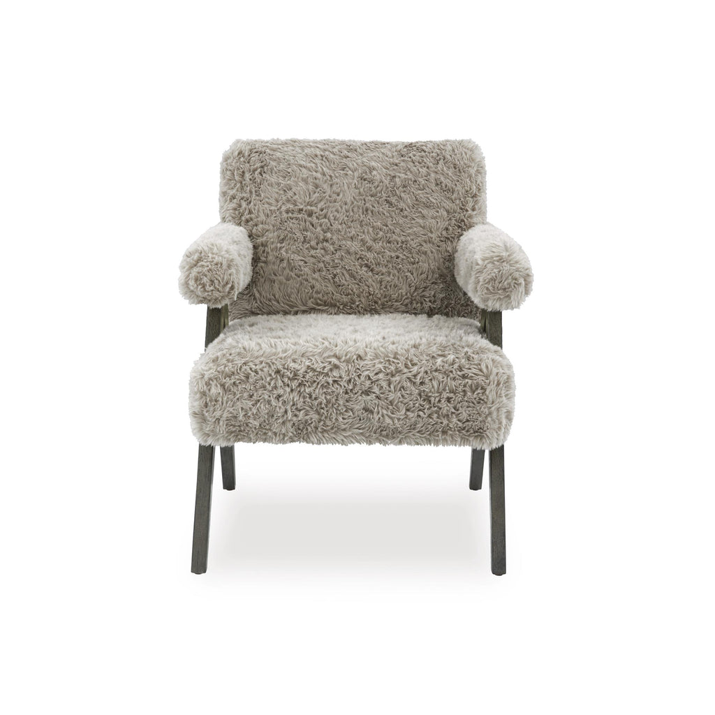 Laissez-vous plaisir avec les textures captivantes de cette chaise d’appoint. Sa fausse fourrure moka est irrésistiblement moelleuse, tandis que les... Laissez-vous plaisir avec les textures captivantes de cette chaise d’appoint. Sa fausse fourrure moka est irrésistiblement moelleuse, tandis que les bras lisses en bois massif fini espresso créent un contraste visuel et tactile frappant. Cette chaise n’est pas qu’un simple meuble; C’est une invitation à se détendre dans un style haut de gamme. Voir plus