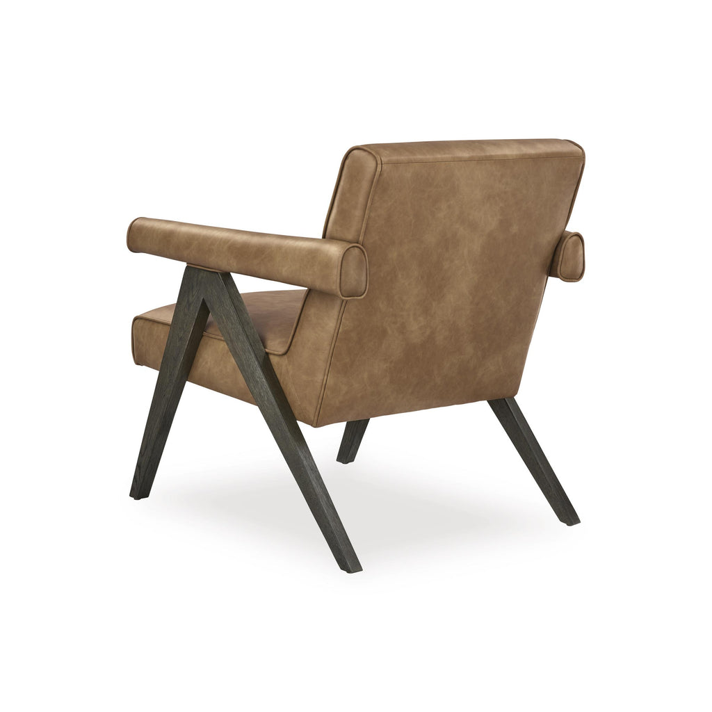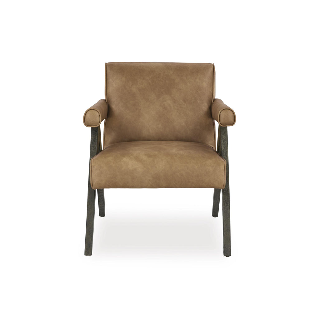 Laissez-vous plaisir avec ce fauteuil d’accent captivant. Le faux cuir couleur caramel offre une sensation douce et accueillante, créant un... Laissez-vous plaisir avec ce fauteuil d’accent captivant. Le faux cuir couleur caramel offre une sensation douce et accueillante, créant un beau contraste avec des pieds en bois massif à finition espresso. Cette chaise n’est pas qu’un simple meuble; C’est une invitation à se détendre dans un style haut de gamme. Voir plus