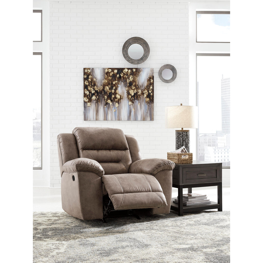 Pour ceux qui aiment le look cool du cuir mais aspirent à la sensation chaleureuse du tissu, ce fauteuil inclinable à bascule offre les deux en toute simplicité. Son similicuir rembourré haute performance est remarquablement durable et facile à nettoyer, ce qui en fait le choix idéal pour les espaces familiaux. Les coussins de dossier à coutures en canal offrent un soutien lombaire indulgent pour un confort maximal, sans oublier une touche avant-gardiste