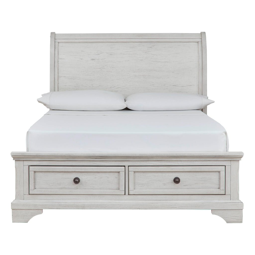 • Deux tiroirs à glissière douce dans le pied de lit avec construction à queue d'aronde et glissières latérales en métal