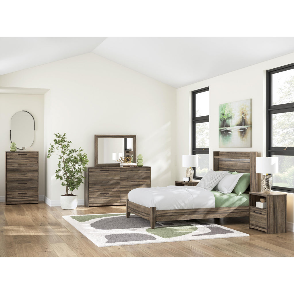 • Finition brun usé sur des grains de chêne reproduits avec un toucher authentique