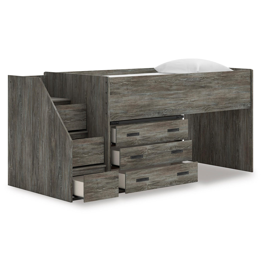 • Finition grise chaude vieillie sur une imitation de grain de chêne avec une touche authentique