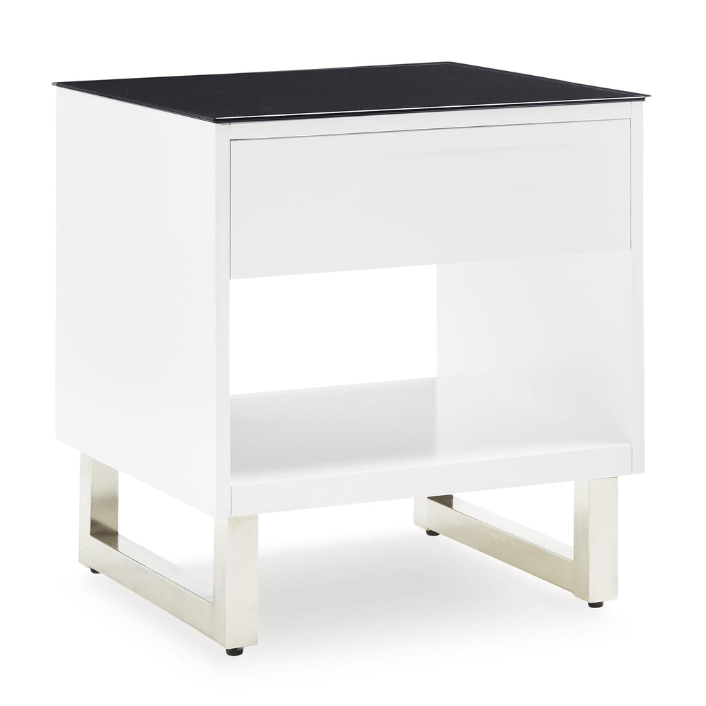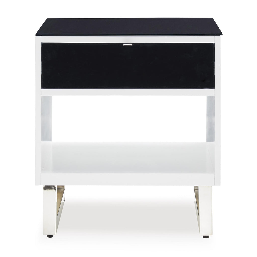 • Plateau en verre noir ; façade de tiroir en stratifié acrylique noir