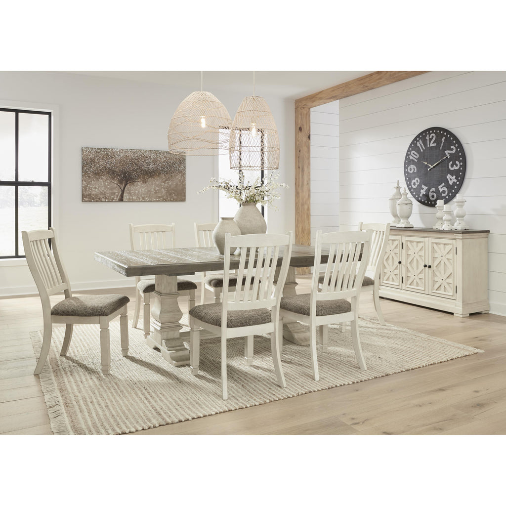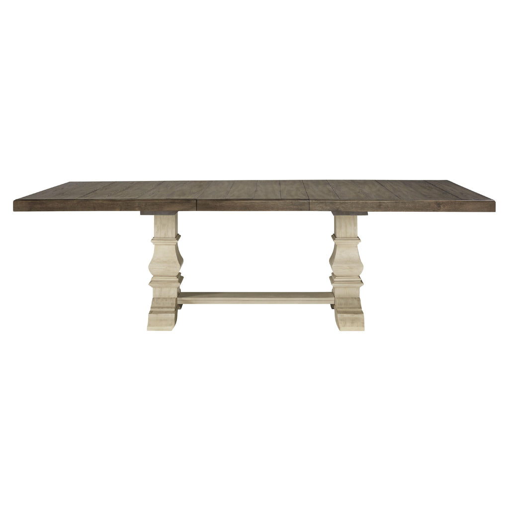 • La table s'étend jusqu'à 103 po en tirant des deux extrémités et en insérant la feuille