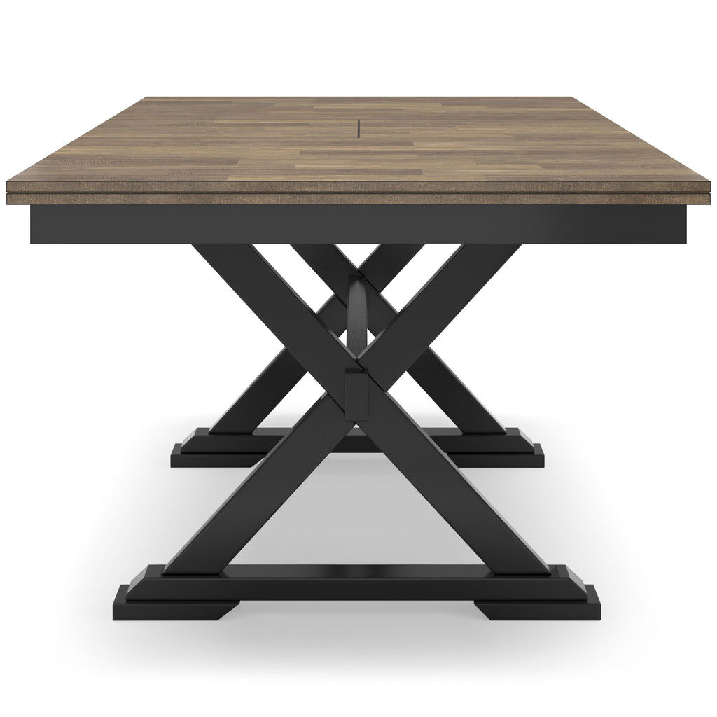 • Finition bicolore (dessus en placage de manguier à blocs de boucher avec finition brun foncé ; cadre avec finition satinée noire chaude)