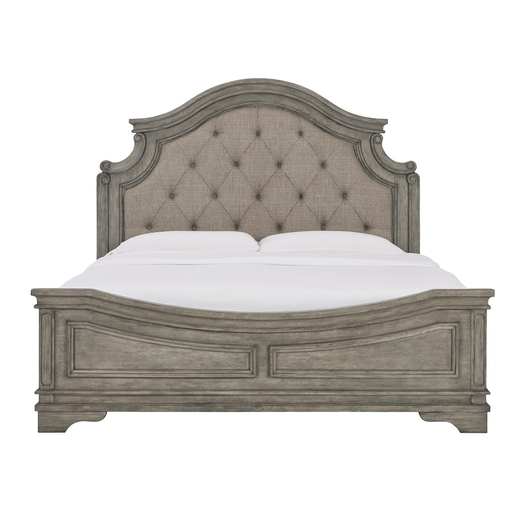 Le style pittoresque campagnard et la qualité de la construction font de ce très grand lit à panneaux un rêve devenu réalité. La finition gris antique et le rembourrage beige apportent une chaleur rustique. La tête de lit de forme ornementale allie un design classique à un charme chaleureux pour une chambre à coucher élégante et indispensable.